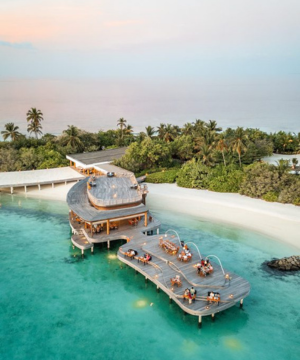 這個浪漫的海濱度假勝地非常適合親密的餐前約會,啜飲一杯香檳,品嚐美味的小吃和小蛋糕。添加魅力的是夢幻島的迷人景色--Hurawalhi的私人沙洲刺穿海洋的藍色,創造了一個美麗的,超現實的景象。